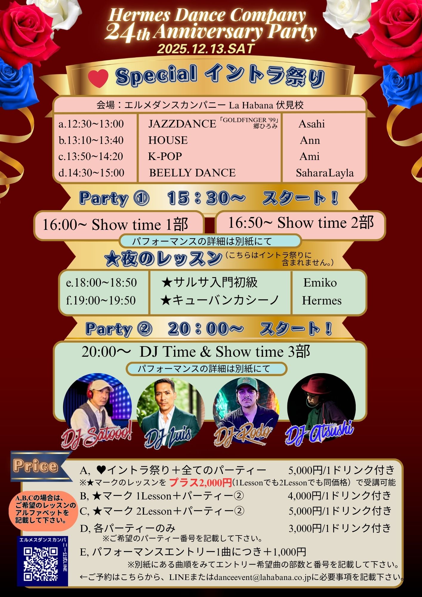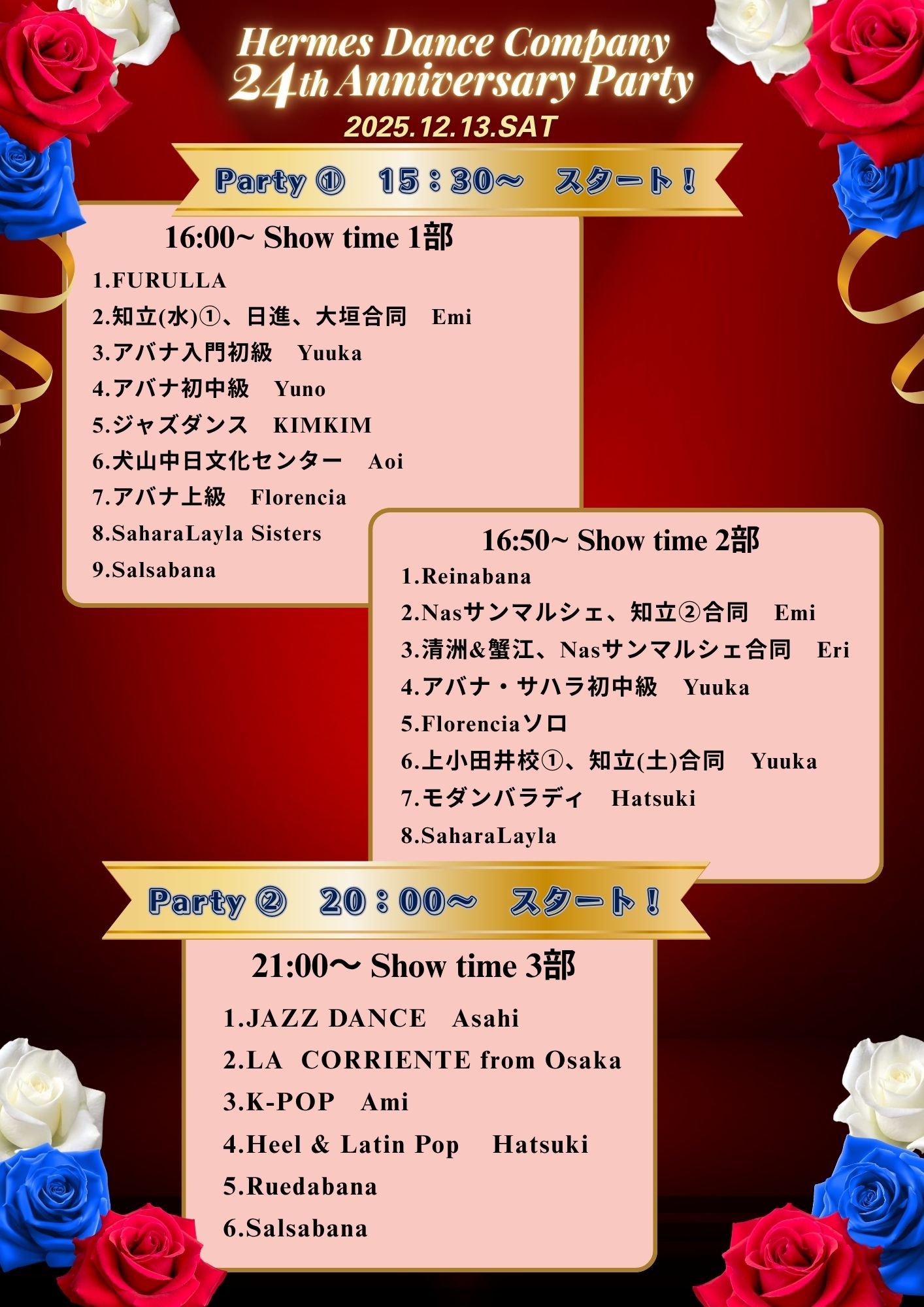 12月13日(土)★エルメスダンスカンパニー24th記念パーティー★