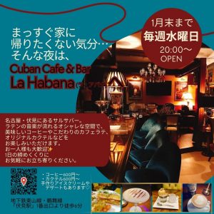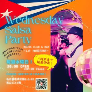 水曜日夜のSalsa Party&キューバンカフェ&バータイム開催延長します!