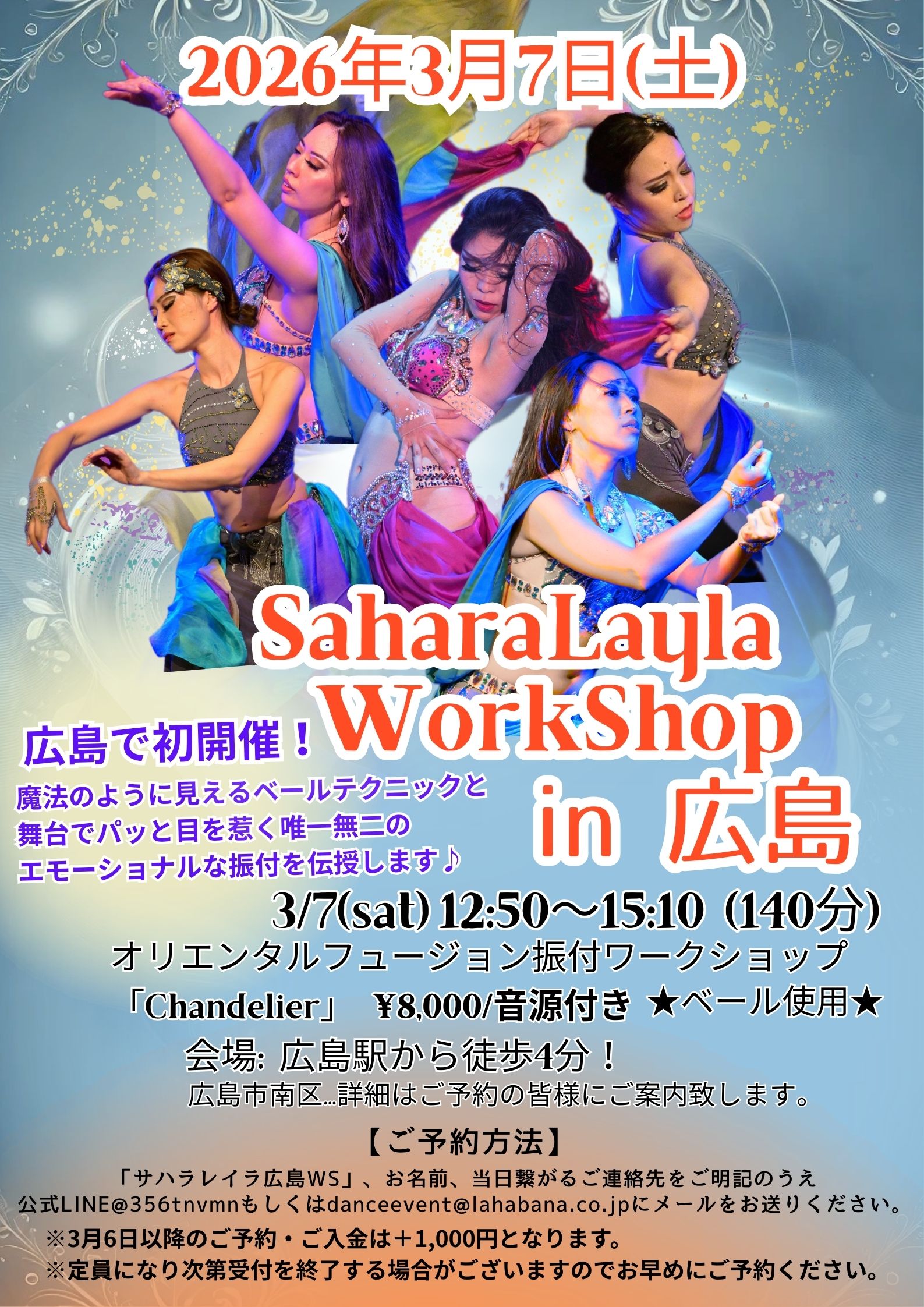 2026年3月7日(土) SaharaLayla WorkShop in広島SaharaLayla初の広島ワークショップがついに開催決定となりました