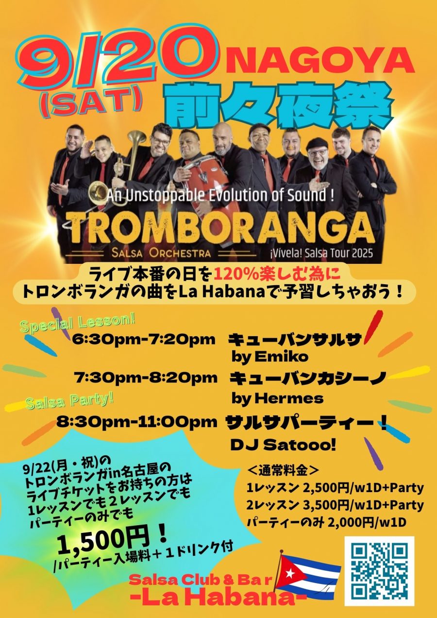 La Habanaでは9月22日(月・祝)の名古屋公演当日を120%楽しむ為に前々夜祭を開催します!