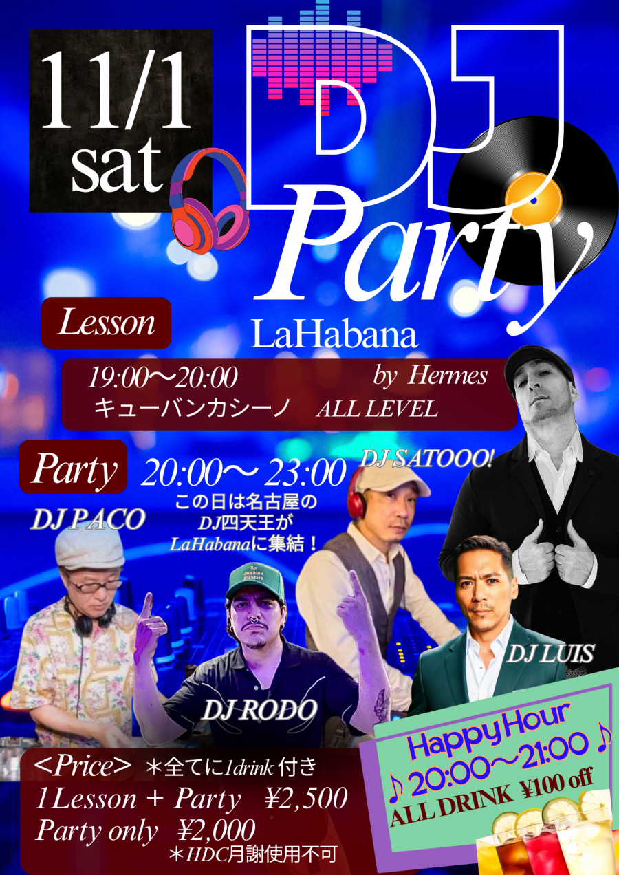 この日は、DJ SATOOO!、DJ LUIS、DJ RODO、DJ PACOの4人のDJがLaHabanaに集結しDJをして下さいます🙌パーティーで踊ることが好きな皆様に必見のこのイベント✨お見逃しなく!!!