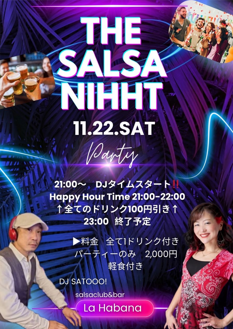 サルサナイトは、毎週土曜に開催される呑んで踊って楽しむ、ラテンの雰囲気満載のダンスパーティーです。